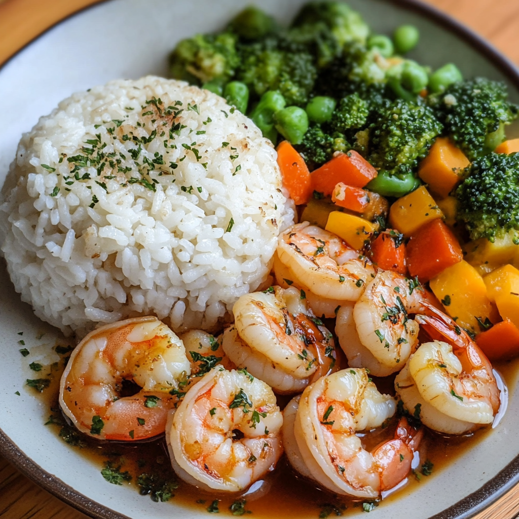 Garlic Butter Shrimp with Steamed Rice & Mixed Vegetables