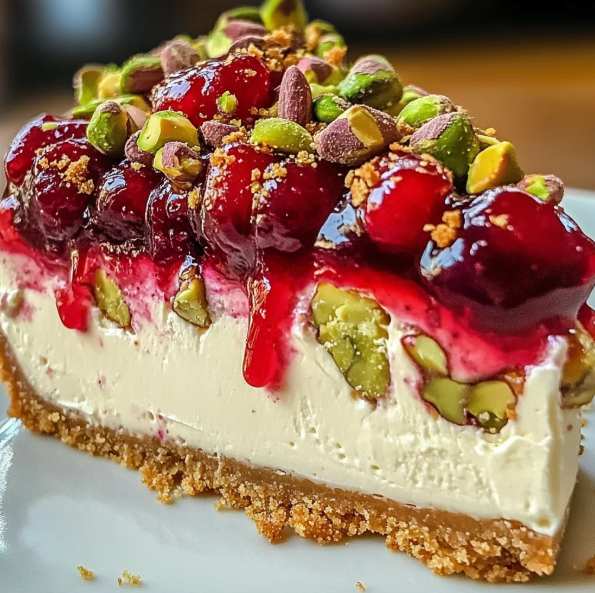Cherry Pistachio Cheesecake is a luscious dessert recipe that brings together the rich flavors of pistachios and the tartness of cherries. This cheesecake is not only visually stunning but also incredibly delicious, making it perfect for holidays, special occasions, or simply to satisfy your sweet tooth. Its creamy filling and buttery crust make it a standout treat that everyone will love.