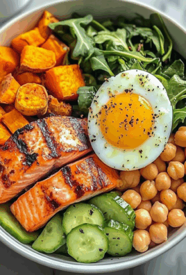 Omega Bowl: Salmon, Jammy Egg & Greens with Chickpeas & Sweet Potato