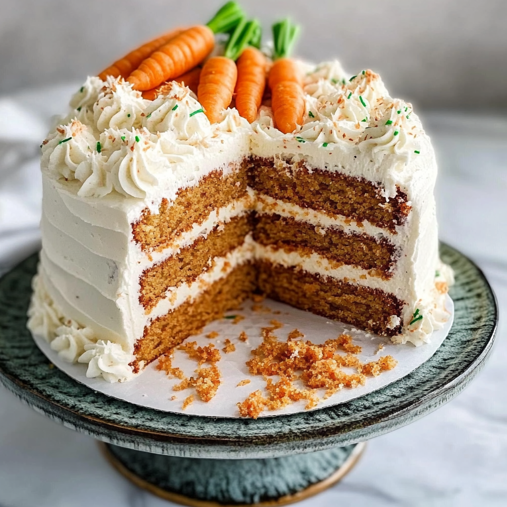 Indulge in the delightful taste of this Classic Carrot Cake, a perfect dessert for any festive occasion or family gathering. With its fluffy texture and a harmonious blend of warming spices, this cake is sure to become a favorite among friends and family alike. Each bite is filled with the sweet essence of fresh carrots and complemented by a rich vanilla cream cheese frosting that brings everything together beautifully. Whether you’re celebrating a birthday, holiday, or simply enjoying a cozy evening at home, this carrot cake delivers warmth and joy in every slice.