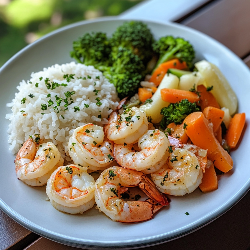 Best Side Dishes for Garlic Butter Shrimp with Steamed Rice & Mixed Vegetables
