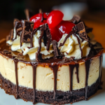 This Hot Fudge Sundae Brownie Cheesecake is a luscious dessert that blends rich chocolate and creamy cheesecake into a single indulgent treat. Perfect for celebrations, family gatherings, or simply satisfying your sweet tooth, this cheesecake features a fudgy brownie base topped with hot fudge, whipped cream, and cherries. Each slice is a delightful combination of flavors and textures that will impress everyone.