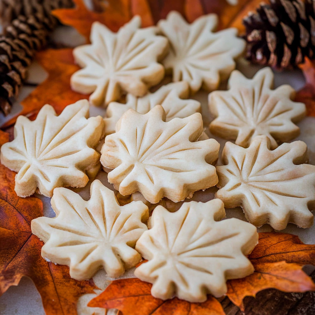- Cut out shapes using a maple leaf cookie cutter and bake at 350°F for 8-10 minutes until edges are golden.