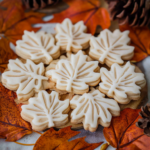 - Cut out shapes using a maple leaf cookie cutter and bake at 350°F for 8-10 minutes until edges are golden.