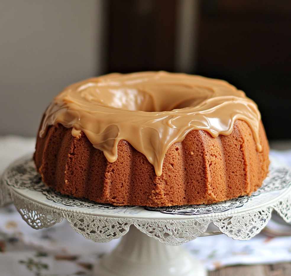 Enjoy your delicious Sour Cream Pound Cake with Caramel Frosting!